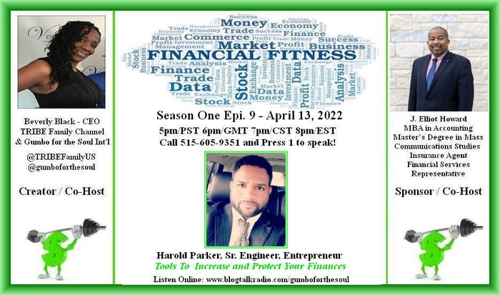 Financial Fitness - Season One - Epi. IX - April 13, 2022 on TRIBE Family Channel will be co-hosted by CEO Beverly Black and J. Elliot Howard with Guest Speaker Mr. Harold Parker, Sr., Engineer, Entrepreneur.