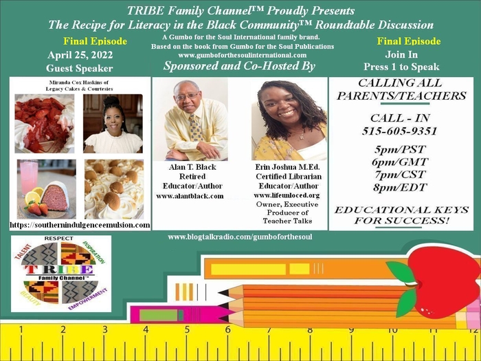 Call 515-605-9351 or Online: https://www.blogtalkradio.com/gumboforthesoul/2022/04/26/the-recipe-for-literacy-in-the-black-community-roundtable-discussion
