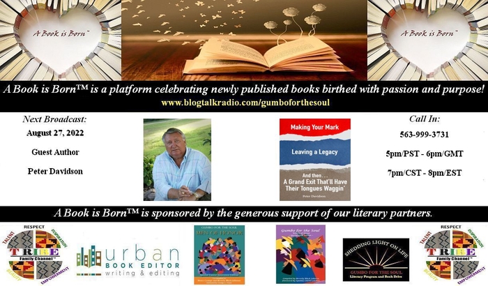 A Book is Born™ Season 8 , Epi. 2 airs August 27, 2022 with Guest Author Peter Davidson.