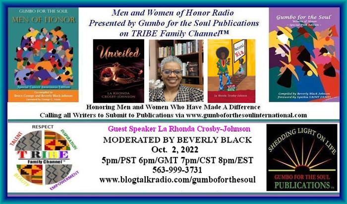### Men and Women of Honor Radio on TRIBE Family Channel™ is a Gumbo for the Soul International family brand created, owned and operated by Beverly Black. All Rights Reserved