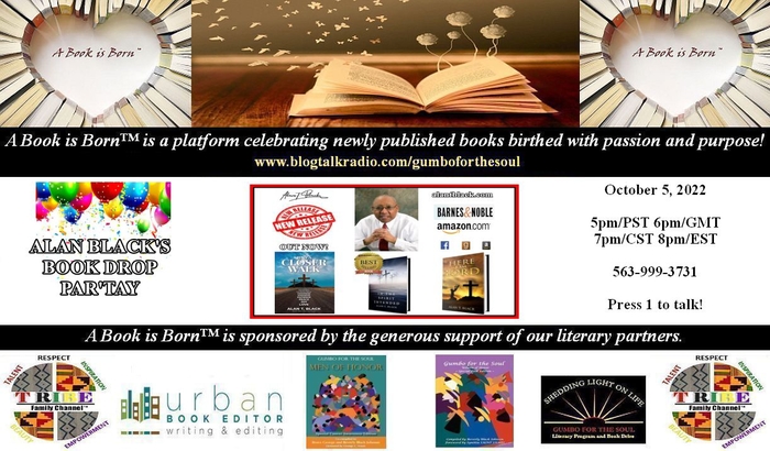 Call (563) 999-3731 or Listen Online: https://www.blogtalkradio.com/gumboforthesoul/2022/10/06/a-book-is-born-guest-speaker-alan-t-black-season-8-epi-10