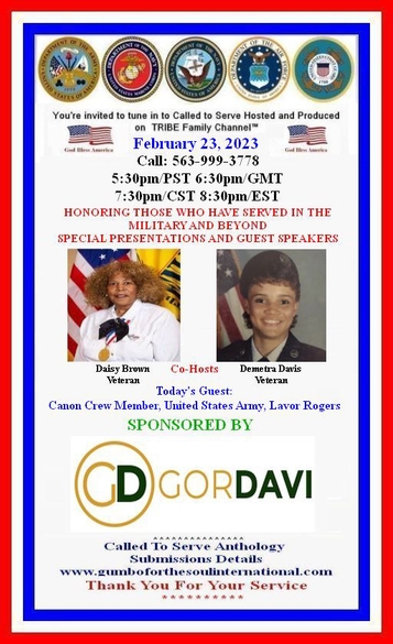 LIVE/ARCHIVED: https://www.blogtalkradio.com/gumboforthesoul/2023/02/24/called-to-serve-co-hosted-by-daisy-brown-and-demetra-davis--season-four-epi-2