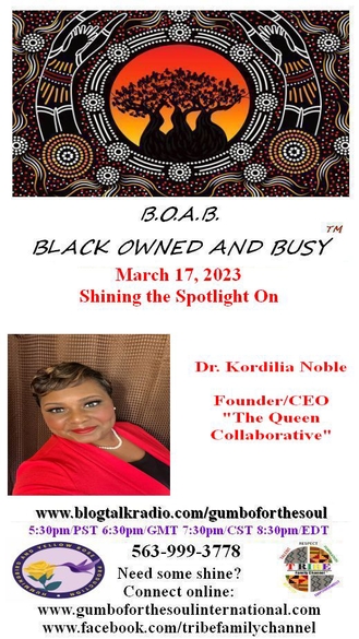 Tune in to B.O.A.B. Black Owned and Busy™ Shining the Spotlight on Dr. Kordilia Noble | Founder/CEO, "The Queen Collaborative" with us!