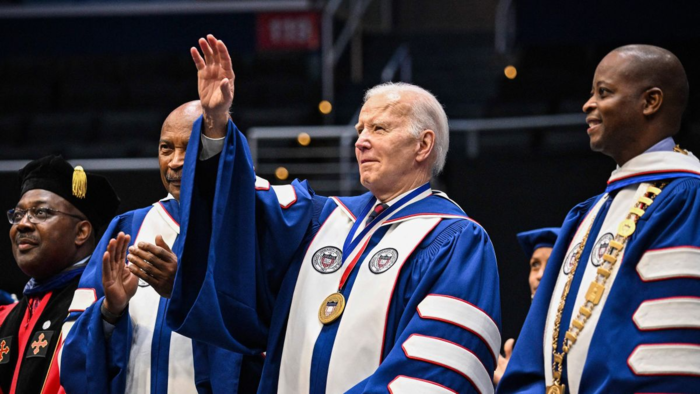 But despite some strong audience applause, Biden’s message was not entirely well-received. The crowd of graduates was dotted with students’ signs criticizing the Biden-Harris administration’s treatment of African Americans.