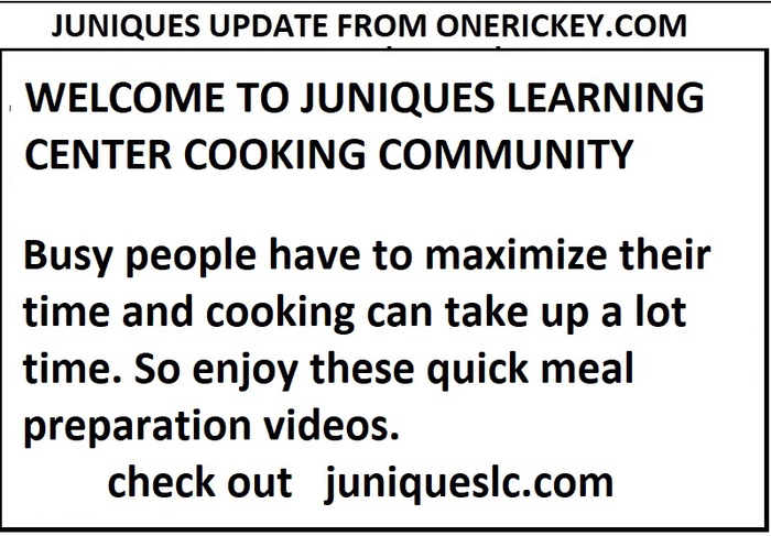 Hello Community, Know you are busy and your schedules are full. Cooking can take up a lot of time!!! So here are some quick video recipes to help you maximize your day. Have fun!!!! For more video visit http://juniqueslc.com