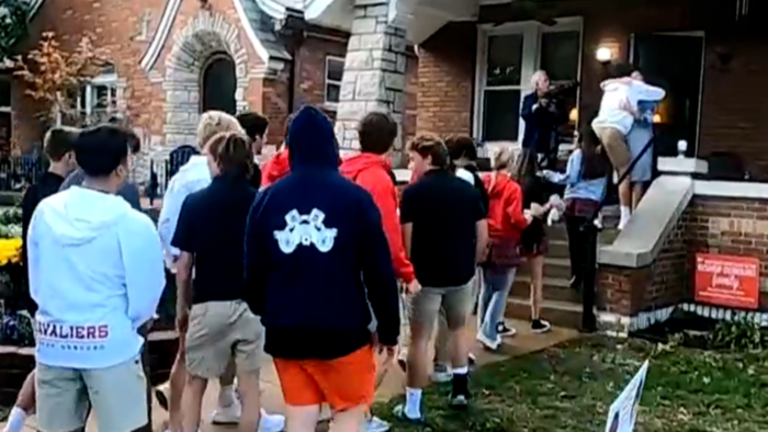 St. Louis — The students come together at the crack of dawn from all directions, converging on this tiny house in St. Louis, Missouri, for their weekly, Wednesday visit with 66-year-old Peggy Winckowski.
