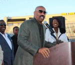 “I'm bringing Hollywood to Montgomery,” said Steve Harvey, who visited the ASU campus on Saturday, April 2, to announce that he is partnering with Alabama State University to sponsor its annual Turkey Day Classic.