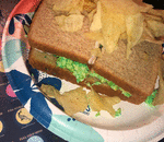 We took three eggs, green food coloring, onions and sharp cheddar cheese voila =Egg Samich