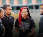 A video featuring players wearing Livingstone College jerseys and helmets and crashing int ...