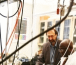 Prof. Vlahovic, grad student AjayiBranislav Vlahovic, an NCCU physics professor, is the man behind the money that funds the research centers, both of which he directs.