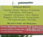 The photo to the right was taken in front of a Baptist Church in Glenolden, Pennsylvania. Your thoughts on this please... ...